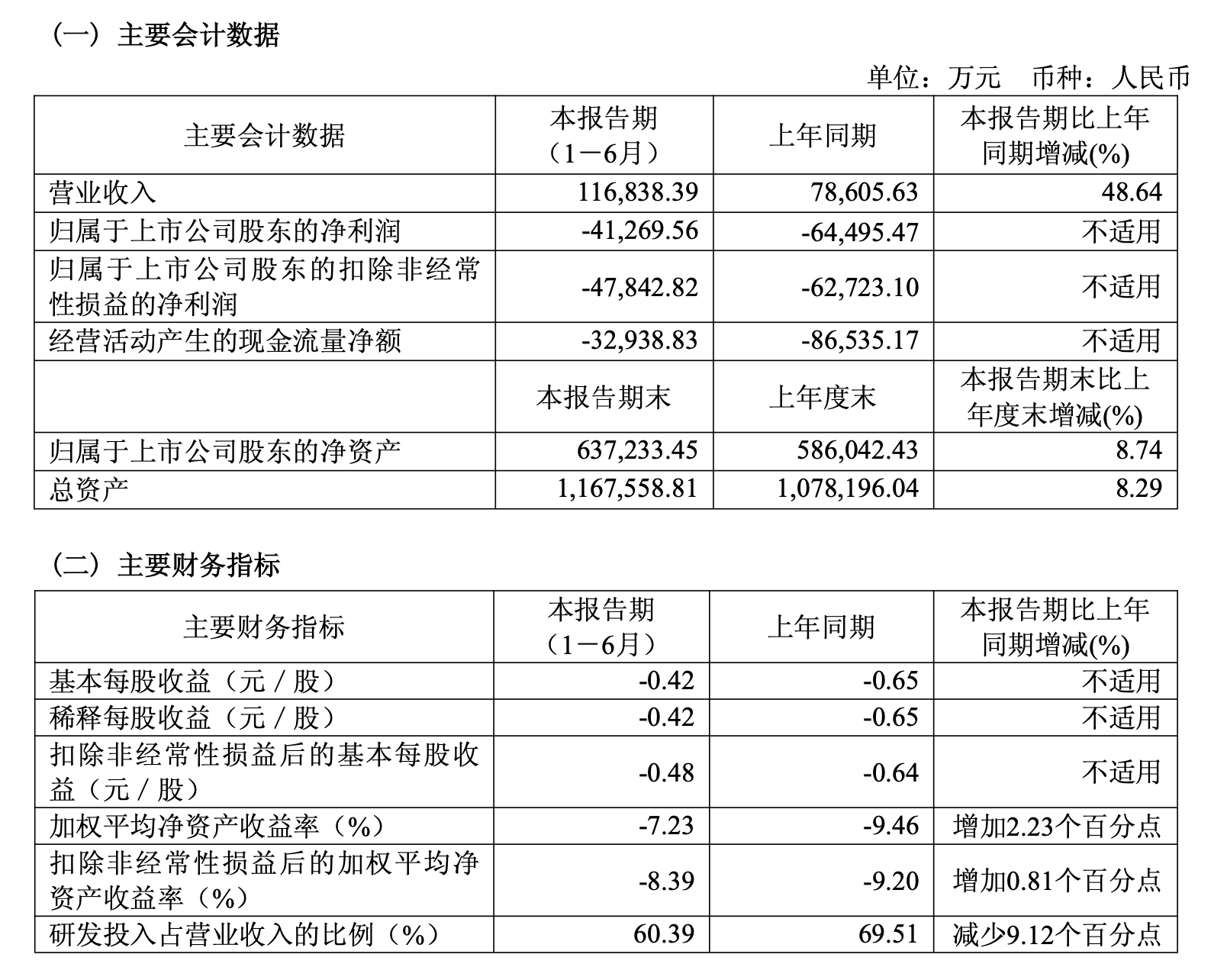 君实生物报告期内研发投入合计7.06亿元,同比增长29.14%,占营收比例为60.39%,同比下降9.12个百分点。